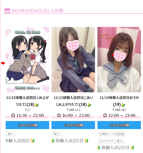 体験入店初日、体験入店2日目と新人の女の子多数出勤!